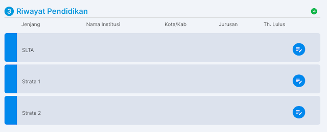 - Negara, Jenjang Pendidikan, Tahun Masuk, Nomor Ijazah dan Biaya Pendidikan cukup jelas.